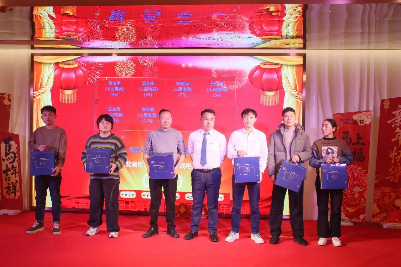 年会精心准备的抽奖是全场最期待的环节,堆成小山的奖品也是现场视线最聚焦的地方,激动人心的抽奖环节更是让整场晚会高潮迭起,从精美奖品到实用电器,再到投影仪等大奖,大屏幕不断滚动抽奖,员工拿奖惊喜连连......